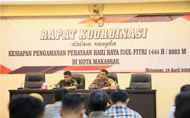 MediaKyta, Makassar– Polrestabes Makassar menggelar Rapat Koordinasi Lintas Sektoral dalam rangka Kesiapan Pengamanan Perayaan Hari Raya Idul Fitri 1444 Hijriah, di Mako Polrestabes Makassar, Rabu (19/04/2023).